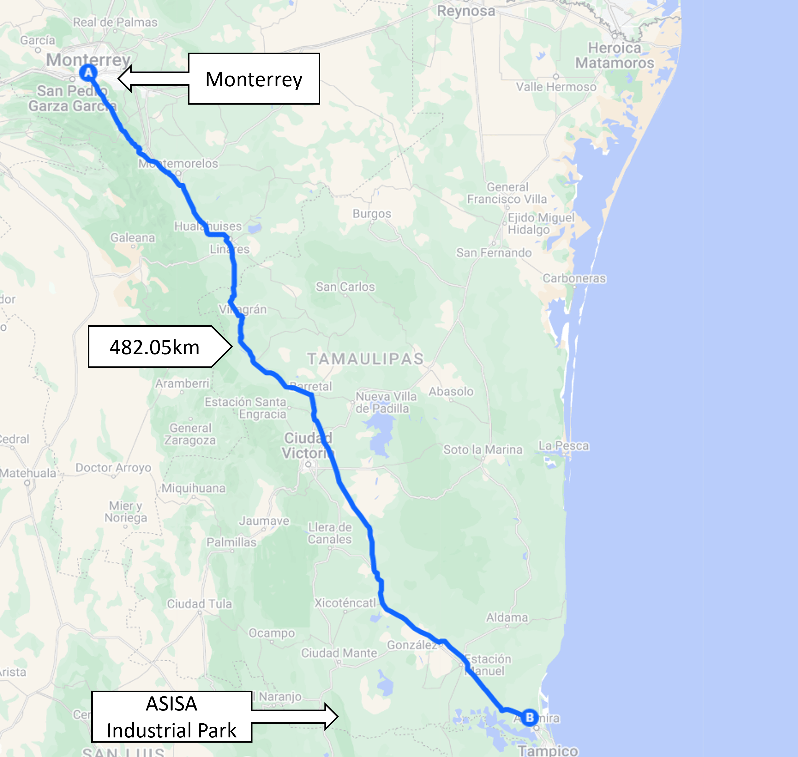 Ubicado sobre la carretera Tampico-Mante, a minutos de las principales salidas al interior y exterior del país.